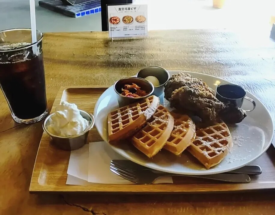 ワッフルはサクッとモチっと、チキンはケン●ッキーに負けないぐらい外はパリパリで身はジューシー。とても美味しい♡